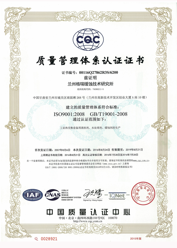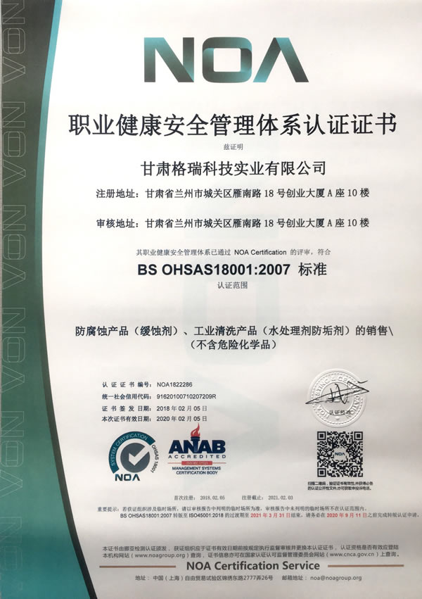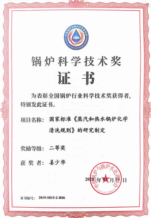 集團創始人姜少華教授是我國知名的緩蝕劑研究及化學清洗技術專家,是第一代化學清洗技術--多用酸洗緩蝕劑Lan-826的發明人之一;是中國第二代工業清洗技術“GR-943運行除垢靈”“GR-201克垢丹”新型中性無酸清洗技術的發明人;是第三代清洗技術MEPC體系科研平臺奠基人。現任中國鍋爐水處理協會副理事長,國家水協水處理藥劑(樹脂)專業技術委員會主任,全國鍋爐壓力容器標準化技術委員會鍋爐傳熱介質分技術委員會副主任,蘭州格瑞緩蝕技術研究所所長。